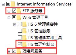2. 展開Internet Information Services結構,勾選:FTP服務器(全選)、IIS管理控制臺、萬維網服務(全選)