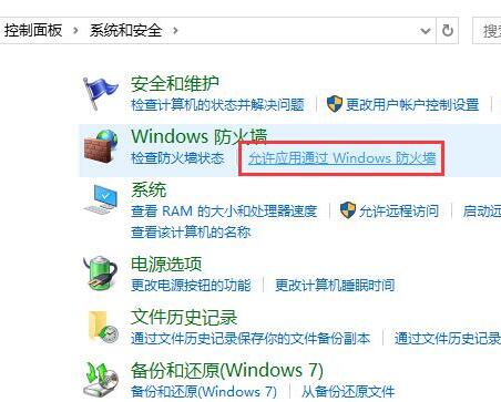 1. 打開控制面板→系統和安全→Windows防火墻→允許應用通過Windows防火墻