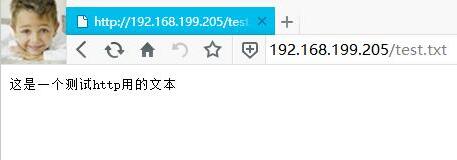 打開瀏覽器,輸入剛上傳的文件路徑http://192.168.199.205/test.txt,等待瀏覽器正確顯示你所上傳的文件內容,則測試成功!
